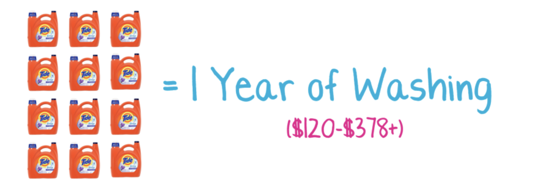 Washzilla laundry ball can save up to 21-57 cents per load, or about