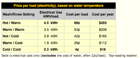 As seen in the chart above, with a top loader, using cold water with the Washzilla laundry ball can save up to 68 cents per load (68 cents for hot water load minus 4 cents for cold load) or $249 per year in comparison to washing only with hot water.